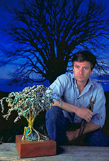 But a West Point education, a graduate degree in geology, two combat tours of duty in Vietnam and a stint as a program manager for General Electric introduced me to exciting ways in which the creative process can be enhanced by technology and self-reliance. On any given day, you might see me in my studio working with a space-age plasma torch making realistic copper maple leaves or taking apart an eighty-year old manure spreader to make an iron cow.