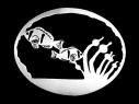 Each of these durable 24-gauge stainless steel ornaments come packaged in its own gift box. All can be backed with colorful stained glass of your choice for $25.00 apiece, including glass and ornament.