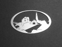 Each of these bright and durable 24-gauge stainless steel ornaments comes in its own gift box. All except the two weather vane replicas can be backed with the colorful stained glass of your choice for $25.00 apiece, including glass and ornament.